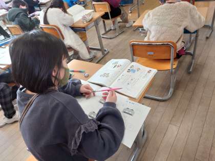 二つの文字を合わせて、漢字をつくる学習をしました。