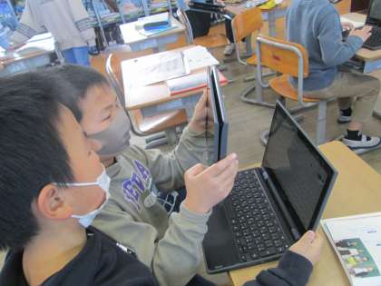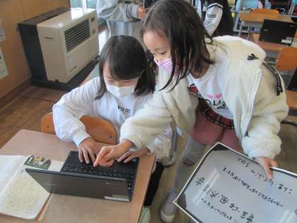 国語科では、「新3年生につたえたいこと」を理由を述べながら発表する学習をしています。2年生に3年生への楽しみな気持ちを高めてもらおうと発表の準備を進めています。発表原稿作りや資料作りに真剣に取り組んでいました。