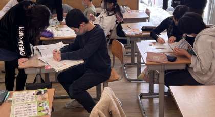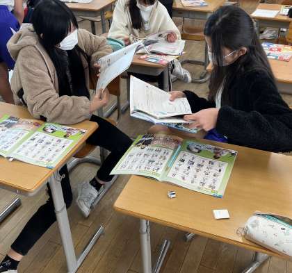 今日の外国語科の学習では、中学校で入りたい部活動と将来就きたい仕事を尋ね合いました。