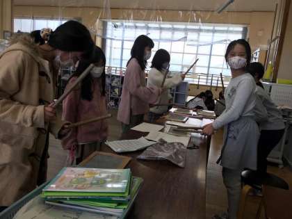 6年生から受け継いでいる清流太鼓「大地」「大祭」の練習をしています。しっかりと受け継ぎたいという強い思いを感じます。