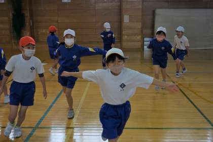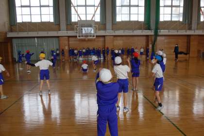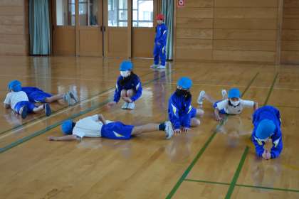週末にジャムボードで忍者の技・術をまとめてきた子供たち。今日は、前回よりもバリエーションを増やして、表現運動に取り組みました。
