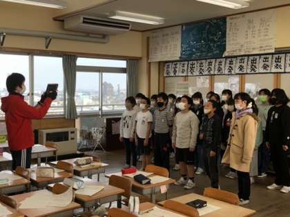 6年生への感謝の気持ちを録画して伝えます。今日は収録をしました。