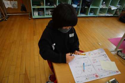 習ったこと得意げに年下の子に教えています。いいお兄さんになりそうです。