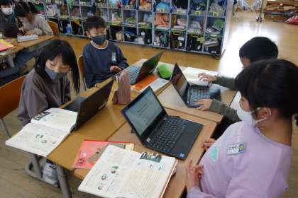 3年生に進級し、2年生の頃と比べて大きな変化がたくさんありました。国語の学習では、「新3年生に伝えたいこと」と題して、発表の準備を進めています。今日は、発表原稿を班で共同編集しました。