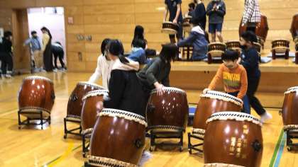 明日の和太鼓発表会に向けて太鼓の準備をしました。写真がぶれるほど、素早い準備でした。