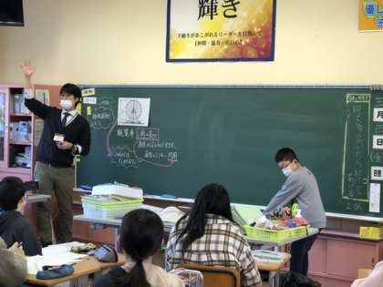 これまで学んできたことを活かして考えます。観覧車の回る部分の直径について話し合っています。