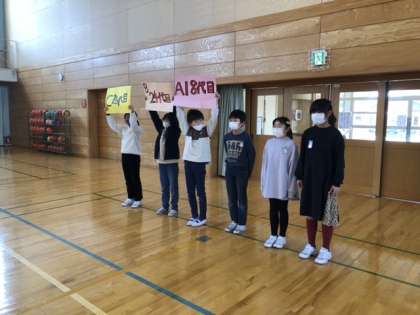 いよいよ来週の月曜日は卒業を祝う会の日です。4年生は体育館でリハーサルをした後、チームごとに仕上げの練習をしました。当日は6年生に感謝の気持ちを伝えます。