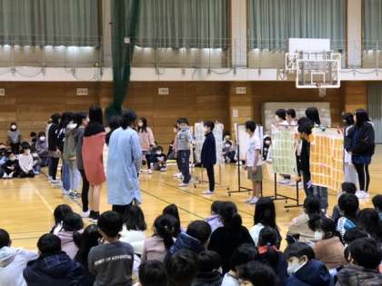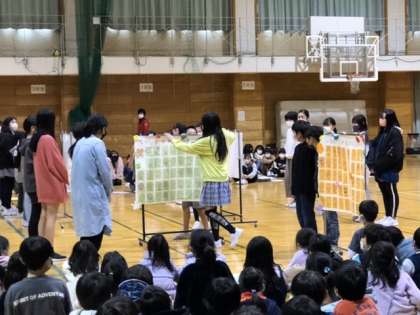 最後に在校生からのメッセージを6年生に贈りました。メッセージの飾り付けは2年生がお手伝いしてくれています。