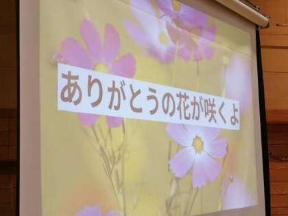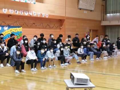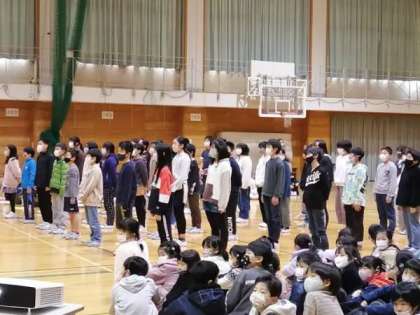 5年生が1〜5年生を代表して、「ありがとうの花」の歌をプレゼントしました。1〜4年生の中にも、口ずさむ子供たちがたくさんいました。6年生さんは、静かに聴き入っていました。「ありがとう」の思いが伝わる素敵な歌でした。