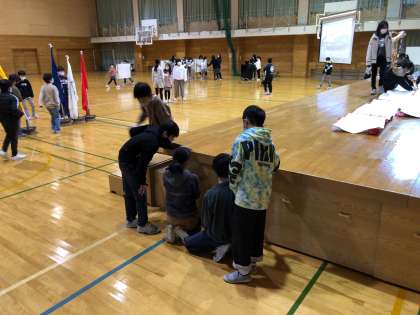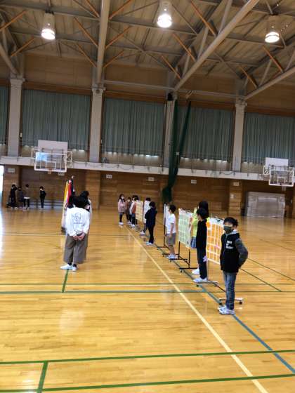 朝の準備を終えた子どもたちが、続々と体育館に集まってきました。