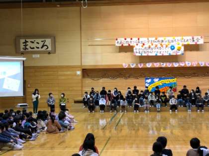 合唱「ありがとうの花」です。担当の係の子供が、繰り返し練習する姿を何度も見かけました。また、5年生のみんなに練習するように呼びかける姿もたくさん見られました。5年生の思いがきっと伝わっているはずです。