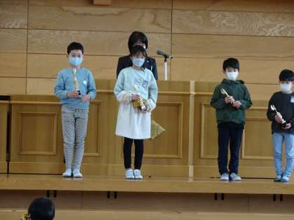 今日は、宮野タイムを利用して、授賞式がありました。校内書初大会や清流作文、宮野っ子検定等、たくさんの授賞がありました。