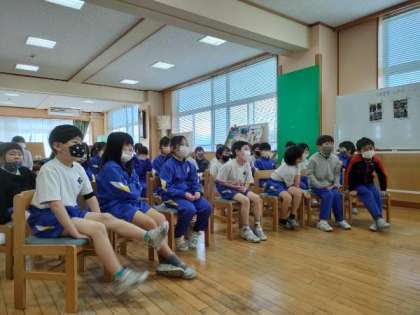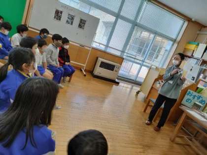 婦中図書館から、お二人の司書の方が来校され、読み聞かせや本の紹介を行ってくださいました。子供たちは、「なんのたまご?」のお話を、想像を膨らませながら聴いていました。その他にも、たくさんの楽しいお話合計6冊を紹介していただきました。