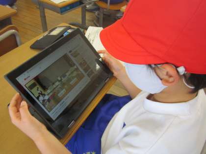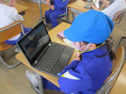 体育の跳び箱を跳べるようになるために、クロームブックで跳び方を調べました。「ふみきり板を踏む前は、片足で跳んで踏み切り板に乗るよ!」「手をしっかりついて、跳び箱を押すように離すといいみたいだよ!」と気付いたことをプリントに書いていました。