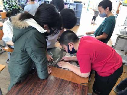 東日本大震災について学習しました。震災の恐ろしさについて絵本や実際の写真を見て感じ取りました。休み時間も資料の絵本や写真を見ています。