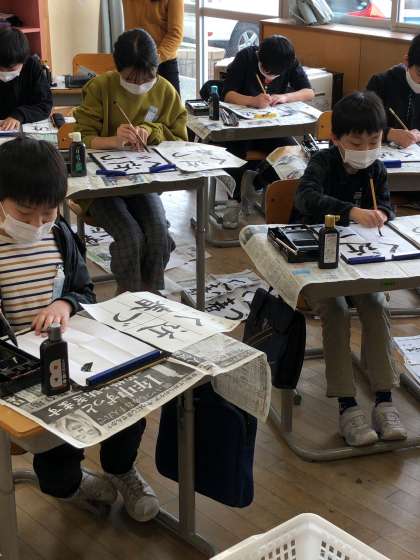 書写では「近づく春」を書きました。今までの学習を生かして目当てをもって取り組みました。