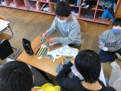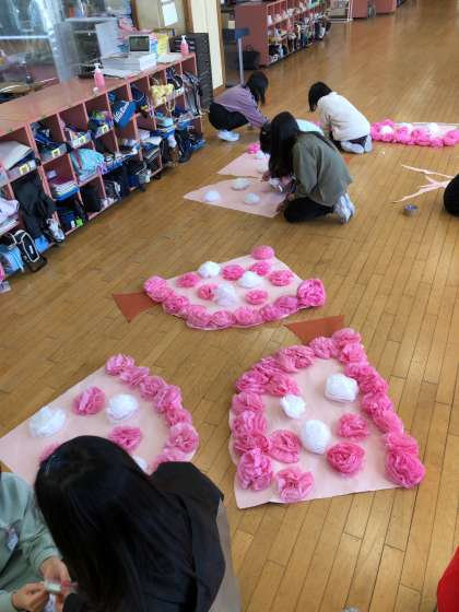 来週の金曜日は、いよいよ卒業式です。今までお世話になった6年生に感謝の気持ちを伝えるために、5年生は当日使用する掲示物を制作しています。