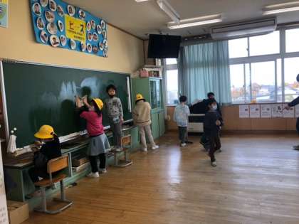 来年度の2年生が使う教室をぴかぴかにしようと、子供たちは張り切って掃除をしました。ぞうきんがけを何度もし、「暑いよ」「綺麗になって気持ちいい」と、嬉しそうな表情の子供たちでした。