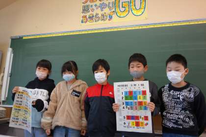 新3年生に伝えたいことを収録しました。2年生が興味を持ってもらえるように、実物を見せたり、話し方を工夫したりしました。
