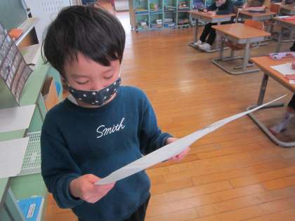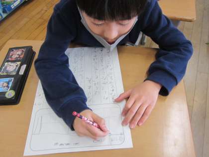 1年生でがんばったこと、できるようになったことをカードにかきました。文章や絵を丁寧にかいています。発表に向けての練習もしています。「書くこと・話すこと」の今までの学びを生かしています。