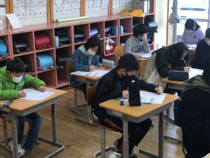 1年間の算数の学習を振り返るプリントに取り組みました。「自力でやってみる」「グループで取り組んでみる」など、取り組み方がいろいろでした。
