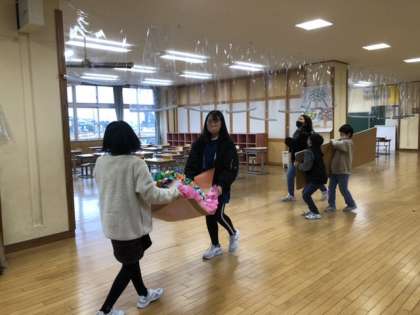 5年生が登校後、早速卒業証書授与式で使った教室の片付けをしてくれています。最高学年としての自覚をもって働いている姿が頼もしいです。