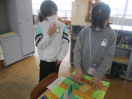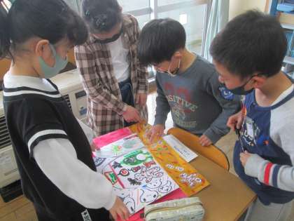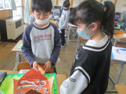1年間の図工の学習でたくさんの作品をつくってきました。お互いの作品を見合って素敵なところを見つけ合いました。明日作品を全て持ち帰りますので、お家でもご覧ください。