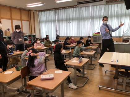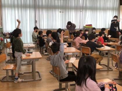 ALTと一緒に外国語活動を楽しみました。名前ビンゴのゲームではとても盛り上がり、あっという間に教室内は英語一色になりました。子供たちの気持ちを大切にしながら、上手に学びを引き出すALTの方に心から感謝です。ありがとうございました。