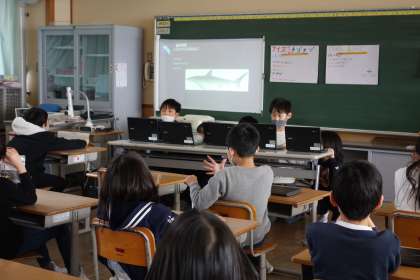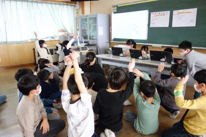 修了式前日、子供たちが企画・準備したクイズで楽しみました。