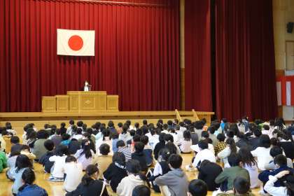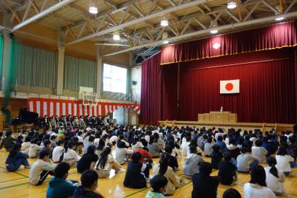 始業式の様子です。新しい担任先生の紹介もあり、これから始まる1年間に意気込む子供たちの姿が見られました。