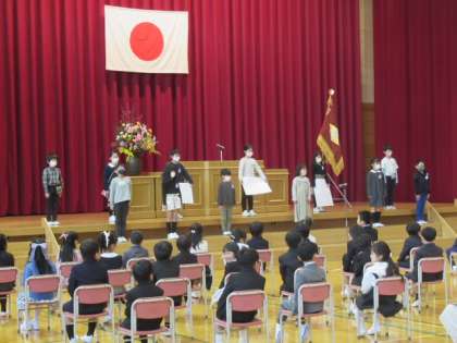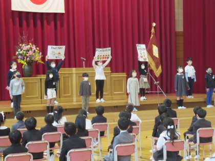 入学式の後の2年生による学教紹介で、新1年生に一年間の楽しい学校行事について紹介しました。