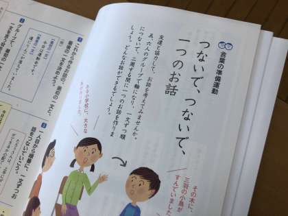 今日から朝学習として、「つながりタイム」が始まりました。国語科「つないで つないで 一つのお話」を題材として、グループで協力しながら楽しくお話づくりをしました。