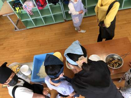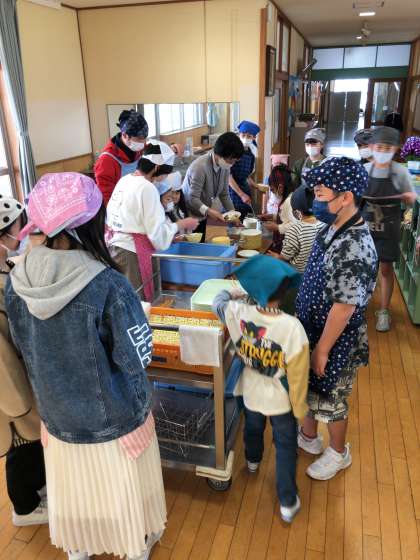 朝のお手伝いはもちろんのこと、今日から始まる給食のお手伝いにも6年生は挑戦しています。優しく教えている姿がたくさん見られました。