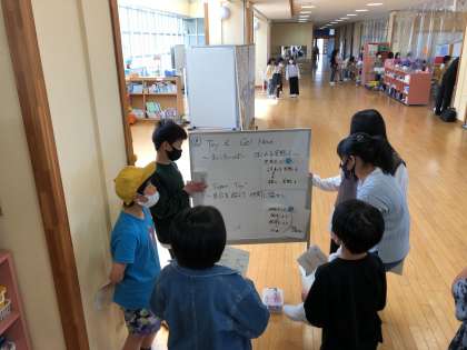 運営委員会の子供たちが、集まって「児童会スローガン」や「運動会のスローガン」について相談しました。今日、6年生の案が仕上がりました。全校のみんなに提案します。