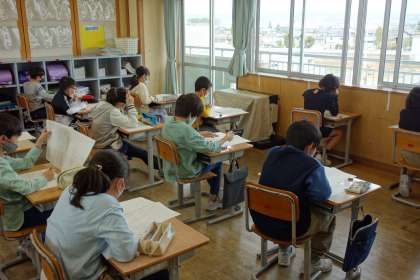 学力調査の様子です。昨年度と比べ、今回は4教科あります。最後までがんばりました。