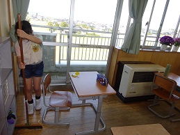 また、今日は清掃がない日でしたが、先生がほうきで床を掃く姿を見て、自分からほうきをもって掃除をしてくれる子供がいました。すてきな行動です。