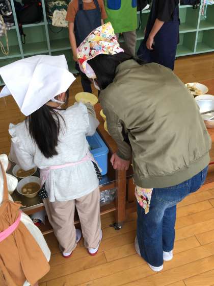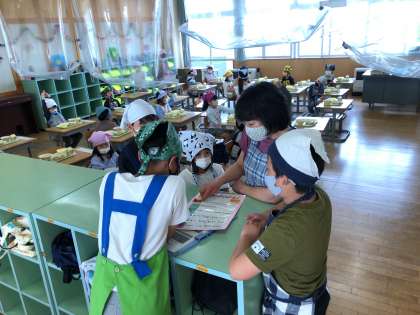 困っている1年生がいたら、すぐに寄り添い、教えてくれています。また、給食の準備の仕方について担任の先生と打ち合わせまで行っています。素晴らしい!