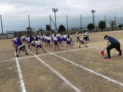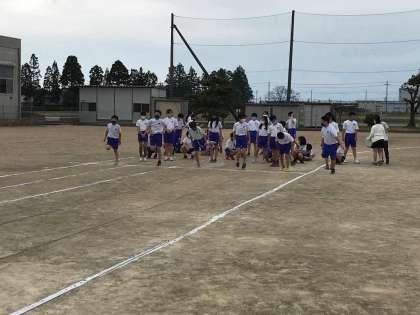 グラウンドで50m走をし、思いっきり体を動かしました。