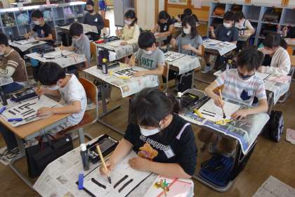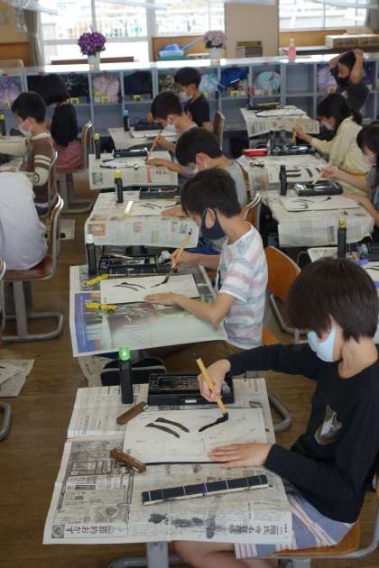 3年生初めて経験した毛筆。昨年度学習したことを思い出しながら、初回の学習を行いました。