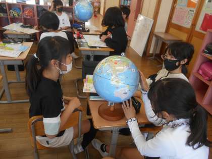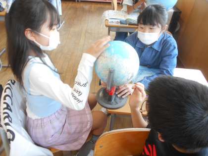 5年生 地球儀を使って学習
