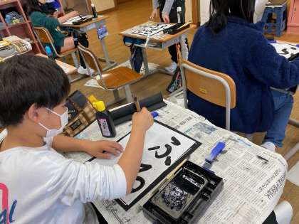 5年生初めての書写の学習です。点画のつながりを意識しながら、「ふるさと」を書きました。