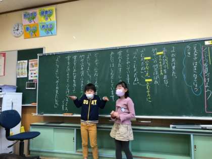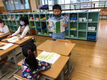 「ふきのとう」の学習では、声の大きさや動作などを工夫して、ペアや全体で音読しました。友達の音読のよいところを見つけて、自分の音読に生かしていきます。音読発表会が楽しみですね。