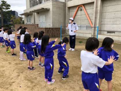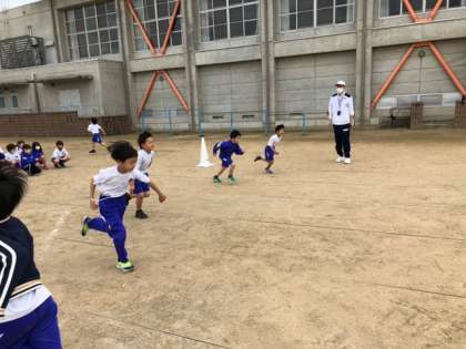 今日は、50m走の練習です。ペアで腕のふり方を確認した後、力いっぱい走りました。