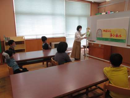 司書さんから、図書室の正しい使い方について教わりました。また、ペープサートや本に関するクイズを通して本に親しみました。