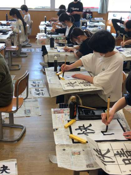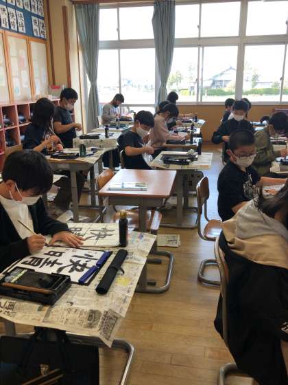 最近、気持ちのよい青空が広がる日々が続いています。書写では、「快晴」を書いています。今日は清書でした。