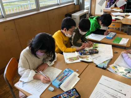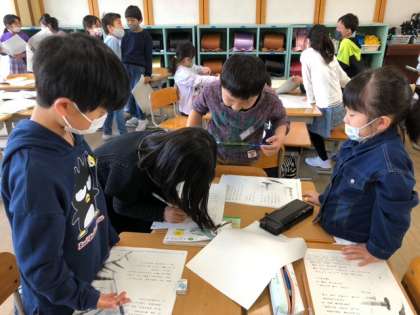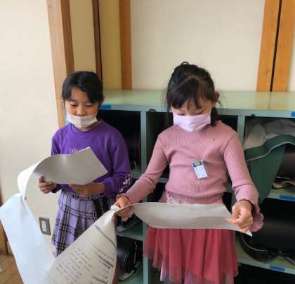 グループで役割を決めて、練習を始めています。動きや、声の大きさなど、音読の工夫を見つけて書きこみました。楽しく音読に取り組んでいます。