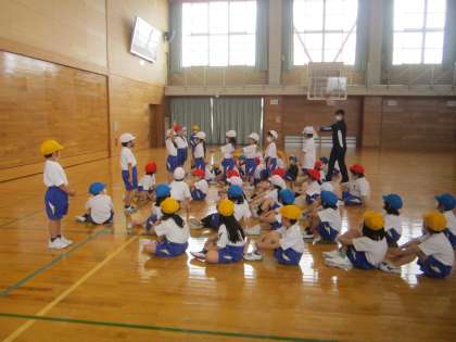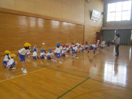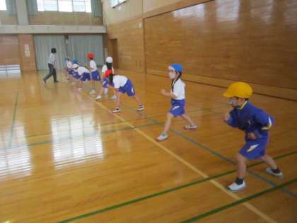 体育では、50m走のスタートの練習をしました。「いちについて」のポーズを教えてもらいました。運動会では、かっこいいスタートができそうです。
