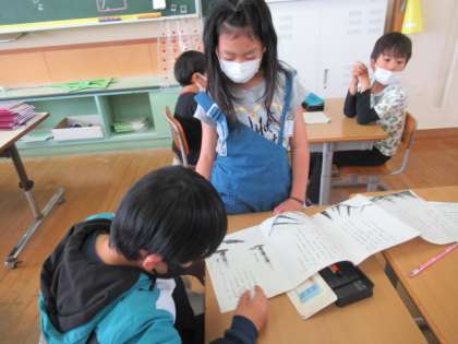 動作を加えたり、声の大きさや、読む速さなどに気を付けて音読しています。