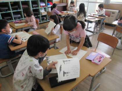 子供たちは、友達と音読の工夫の仕方について話し合いました。