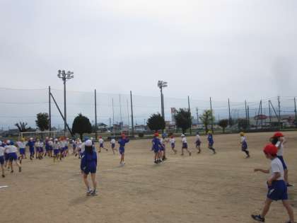 最初にウォーミングアップや、スタートダッシュの練習をし、50m走のタイムを計測しました。今日は、タイムが近い人と一緒に走ったため、お互いに競い合いながら最後まで全力で走ることができました。
